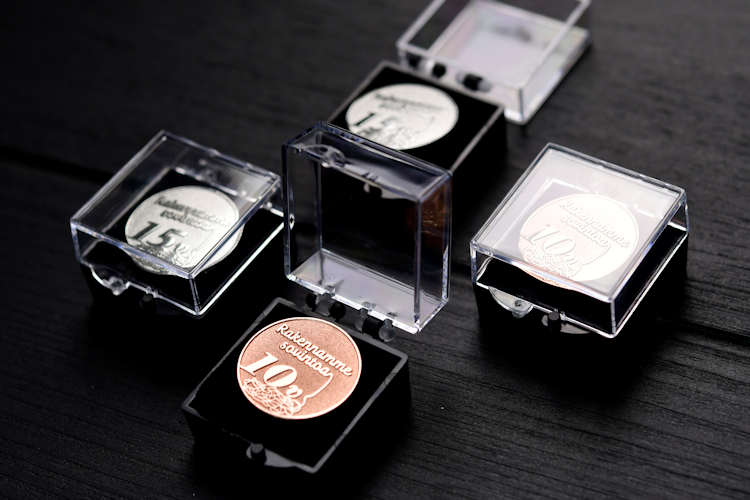 Kobber eller messing er de vanligste materialene på grunn av metallenes egenskaper. Det myke metallet er lett å prege for å oppnå et skarpt og detaljert resultat.
